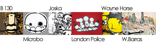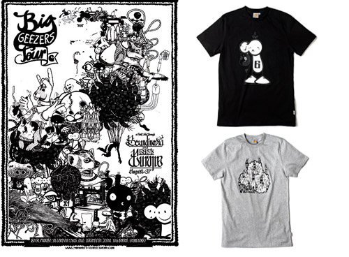 Durant tout le mois d’août, Carahrtt a organisé pour la deuxième fois un tour d’Europe (l’Europe de l’est cette fois-ci) avec les graphistes les plus populaires comme: Microbo (Italy), Joska (Germany), Jeremy Fish (USA), Wayne Horse (Netherlands), Bo 130 (Italy), The London Police (UK) and Will barras (UK), tous illustrés ci-dessous de façon à mettre une image sur leurs noms; d’autres se sont rajoutés tout au long du trip. C’est au départ de Cologne en Allemagne qu’ils ont exprimé leur message de respect (c’est Carhartt qui le dit!!), en repeignant les skate parks et magasins de la marque. Afin de souligner l’évènement, quelques t-shirts et pulls ont été imprimés et vendus dans les magasins participants. Qui sait? Ils deviendront peut-être un jour collectors?!!
