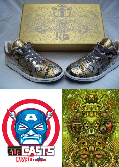 C’est un modèle de Dunk Low Post 2000 (c’est-à– dire qu’il n’y a pas de coutures sur la chaussure sauf pour l’attacher à la semelle) que Tweequim a dessiné pour Nike. Cette paire est unique et a été exposé le 23 août dans le magasin MunkyKing à Melrose (USA). Tweequim, c’est un homme et une femme. Ce couple réalise un travail que j’affectionne tout particulièrement pour le choix des couleurs, pour l’ originalité et les illustrations. Le contrat avec Nike est bien légitime pour ce duo talentueux qui fera encore beaucoup parler de lui. Voici leur lien myspace…tweequi myspace