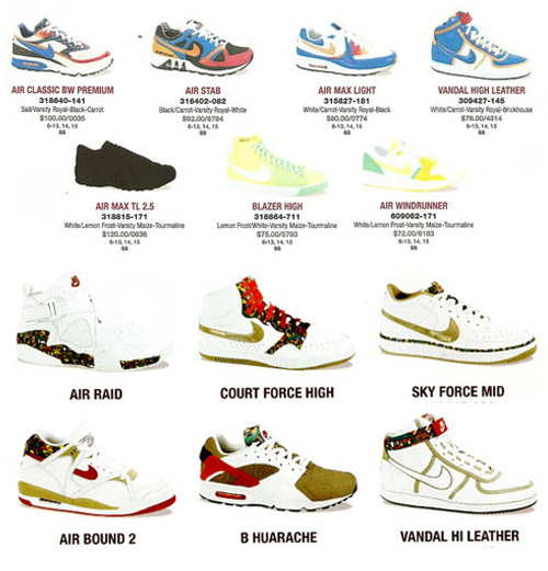 En exclu sur jearaf: voici le catolgue 2008 de chez nike! Comme tout le monde cette année, Nike a decidé de faire du fluo, mais aussi du brun avec des motifs mouchetés. Jearaf a eu la décence de ne vous montrer que les modèle acceptables…On vous invite quand même à découvrir la suite du catalogue sur eukicks site, d’où proviennent les pic’s.
