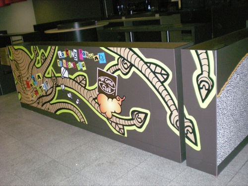 Quelques photos, certes de pas très bonne qualité, du nouveau projet Eurostar à la gare BXL Midi…en attendant de meilleurs shoots! Un nouveau THE COFFEE CLUB a ouvert ses portes récemment, en collaboration artistique avec le collectif A7ik. Une expo est d’ailleurs prévue à la fin juin!