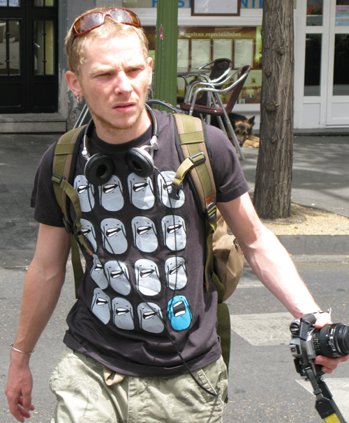 Here we go, les premiers Tees partent comme des ptits pains, en vlà la preuve vivante! Mr X and El Brow à Madrid, RDV El Tribunal, as usual! ((Message for Chris: Hey, duude…take care of your beer…and watch Xav, he’s already put some dirty stuff in it!))