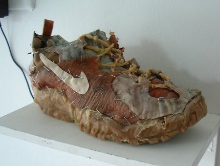 Adam Brandejs est un artiste plasticien diplômé du Collège artisique de l’Ontario; ses influences, il les trouve dans l’informatique, la sculpture, la nature et les mauvais films de zombies. Doué dans la maniement de la sculpture latex, Adam créa la stupeur et l’étonnement lorsqu’il exposa la sneaker en chair humaine. L’Animatronic Flesh Shoe- c comme cela qu’il l’appelle- est constitué d’un semblant de chairs et de peaux, indentiques à l’aspect réel. De plus, son oeuvre est equipée d’un moteur qui incarne à la perfection les spasmes, flux nerveux et sanguins de façon à donner vie à la chaussure. Tout le monde peut trouver chaussure à son pied au jour d’aujourd’hui même…Frankestein.