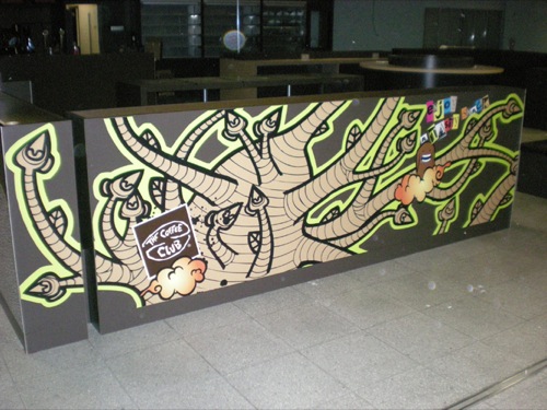Quelques photos, certes de pas très bonne qualité, du nouveau projet Eurostar à la gare BXL Midi…en attendant de meilleurs shoots! Un nouveau THE COFFEE CLUB a ouvert ses portes récemment, en collaboration artistique avec le collectif A7ik. Une expo est d’ailleurs prévue à la fin juin!