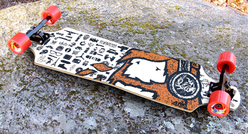 Cédric Scheers, nouveau « Woodnote Sponsored Dude » a de quoi sourire, il vient de recevoir sa nouvelle board ‘pro model’ de chez Woodnote, baptisée pour l’occasion la « Snoopje V2 ». Quelques cm de plus en largeur et en longueur par rapport à la V1, ce modèle hybride s’avère être la reine du slide et aussi du slalom. Customisation à la sauce Mata7ik, 100% made by hand anf with love!