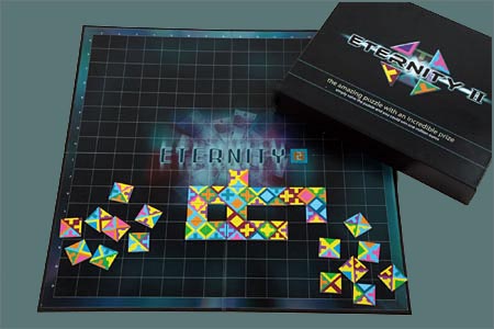 Eternity II (de tomy, les fabricants de jouets) comme 2 millions de dollars, c’est la modique somme que peut rapporter ce maudit casse-tête moderne dissimulé en puzzle de 256 pièces . Il a fallu 5 mois l’année dernière pour qu’un étudiant de Harvard puisse le terminer, mais à ce moment-là , les gains s’élevaient à seulement 1 million de dollars et le jeu était moins cher à l’achat. Si vous êtes au chômage et que vous avez 50€ à perdre, tentez votre chance mais essayez-le d’abord sur le site… c’est gratuit. Petit conseil jearaf: commencez par les bords gris!!vous gagnerez peut être 1 mois.